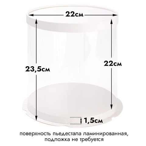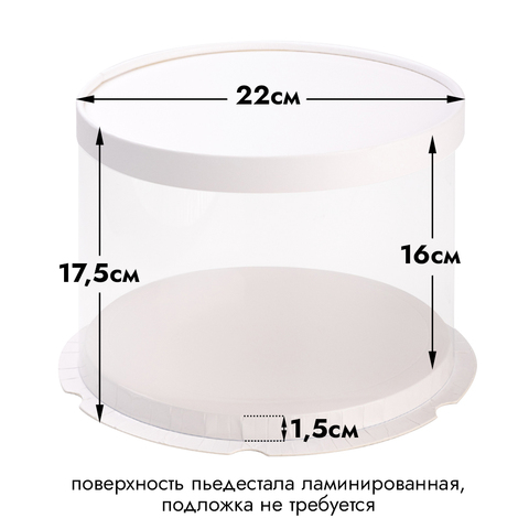 Прозрачная коробка для торта с пьедесталом (аквариум) 22*22 см, круглая, белая