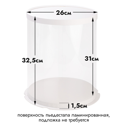 Прозрачная коробка для торта с пьедесталом (аквариум) 26*31 см, круглая, белая
