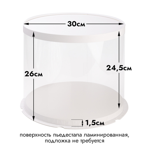 Прозрачная коробка для торта с пьедесталом (аквариум) 30*24,5 см, круглая, белая