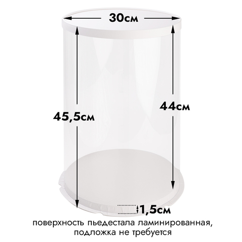 Прозрачная коробка для торта с пьедесталом (аквариум) 30*44,5 см, круглая белая