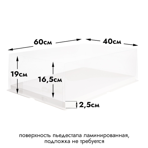 Прозрачная коробка для торта с пьедесталом (аквариум) 60*40*16,5 см, белая