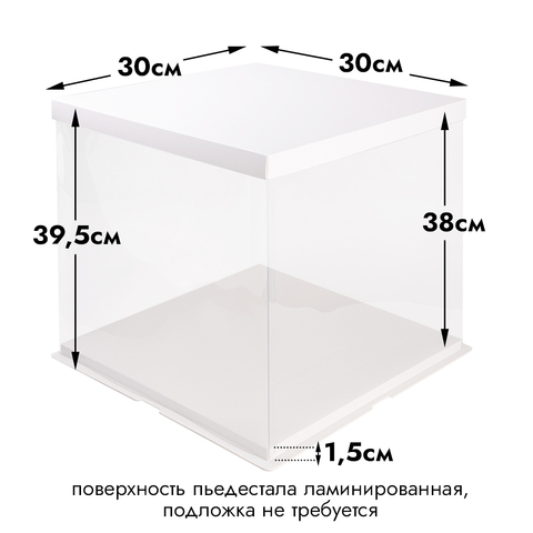Прозрачная коробка для торта с пьедесталом (аквариум) 30*30*38 см, квадратная, белая