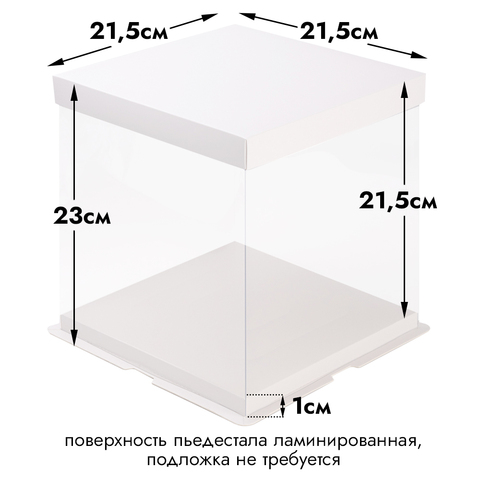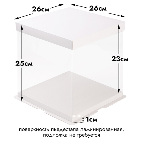 Прозрачная коробка для торта с пьедесталом (аквариум) 26*26*23 см, квадратная, белая
