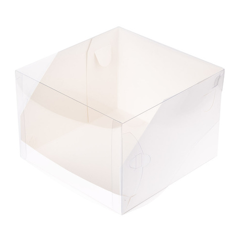 Коробка для торта белая 200x200x140 с прозрачной крышкой