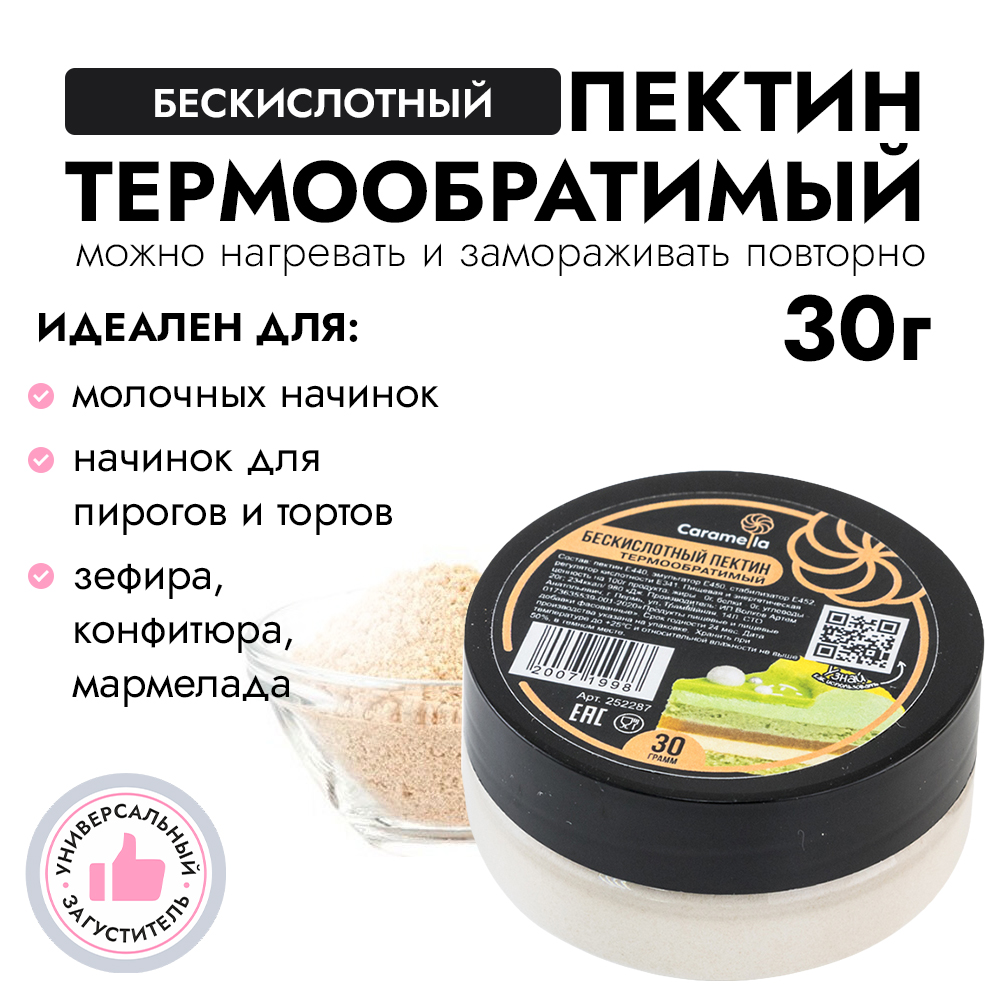 Бескислотный пектин термообратимый на цитрусовой основе - вещество растительного происхождения. Обладает широким спектром применения: загуститель, стабилизатор, гелеобразователь, осветлитель, фильтр, влагоудерживающий реагент. Бескислотный пектин работает без сахара! С сахаром ведёт себя точно так же, как другие пектины, но дает более плотную консистенцию, то есть можно уменьшить расход.