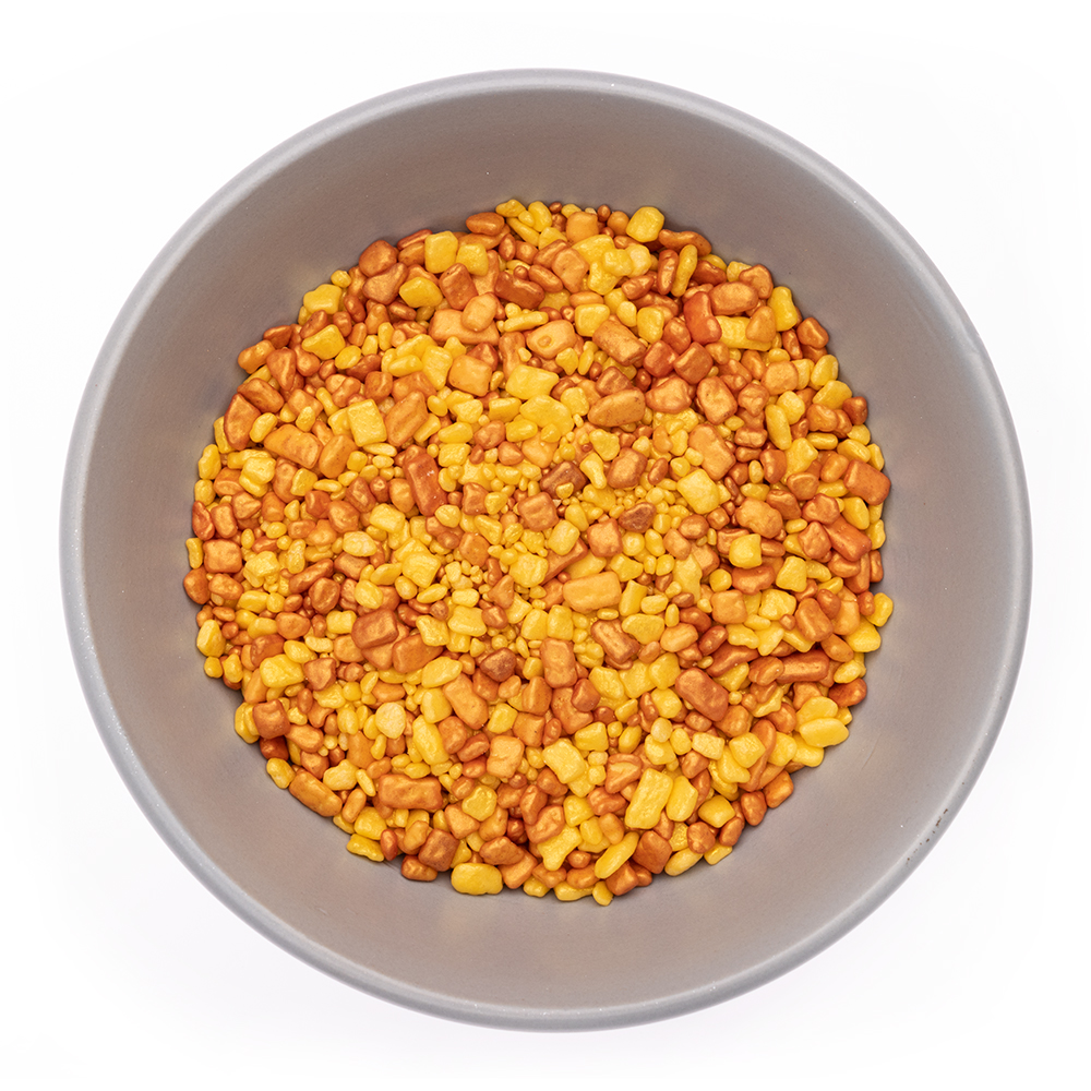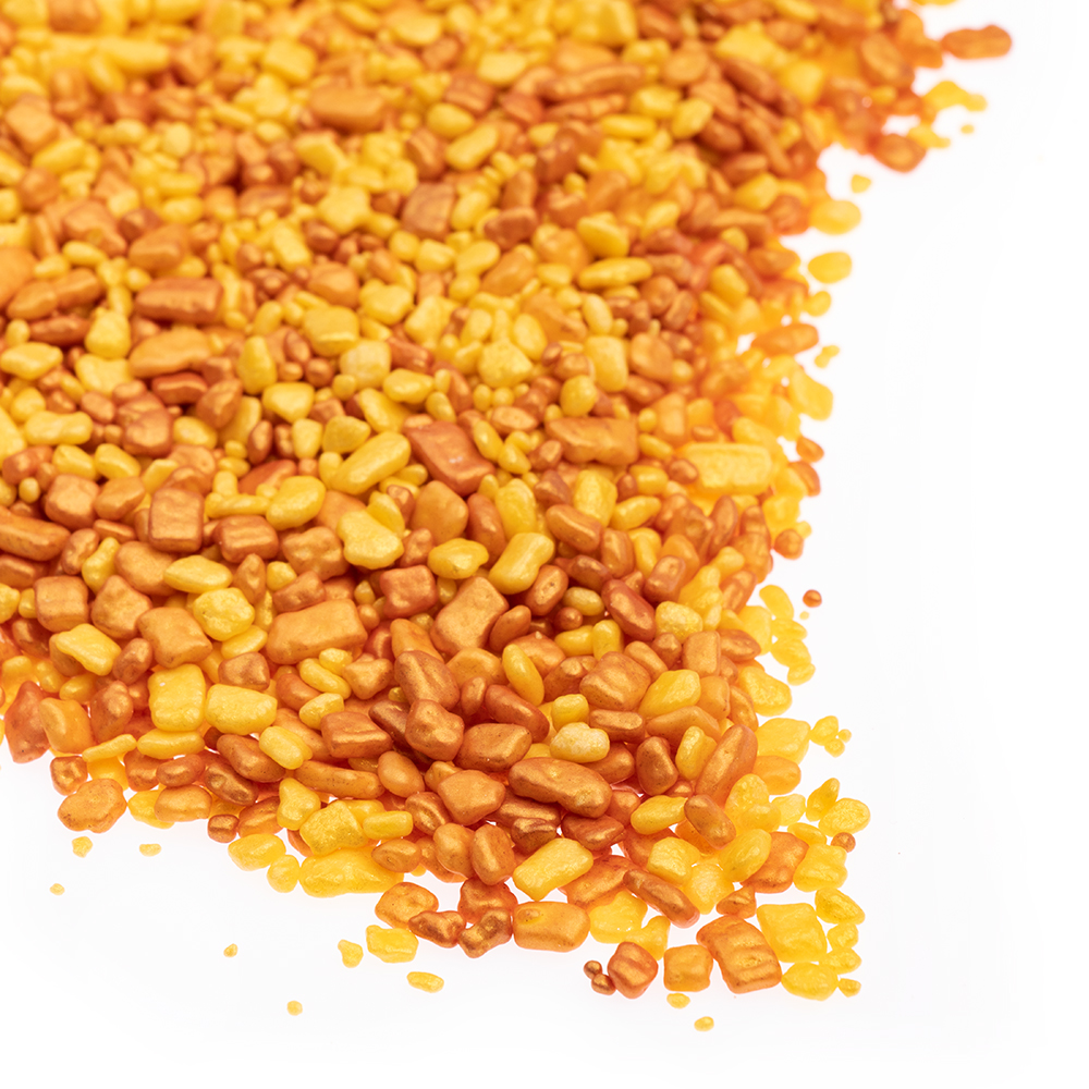 Глянцевая шоколадная крошка золотисто-янтарного цвета для декорирования кондитерских изделий.