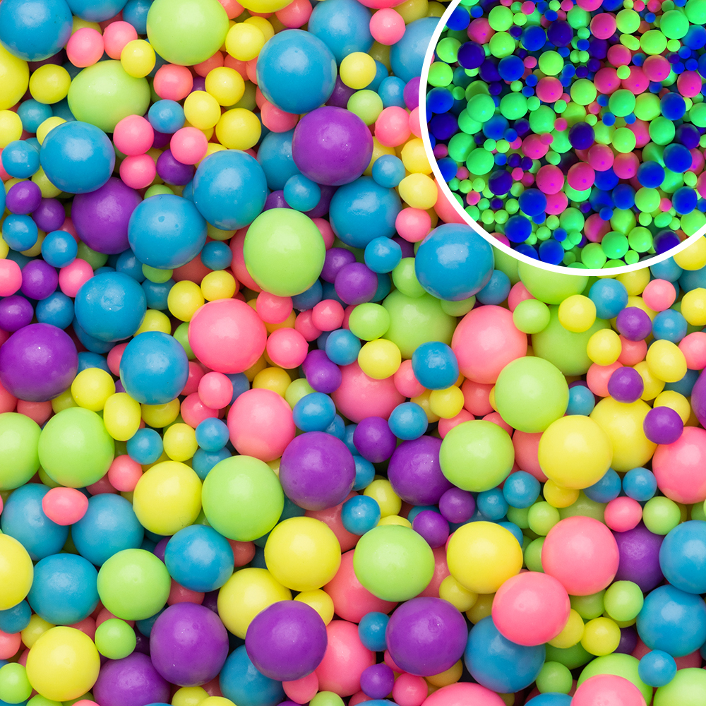Мягкая сахарная посыпка с эффектом неона, светится в ультрафиолете. Используется для декорирования кондитерских изделий.