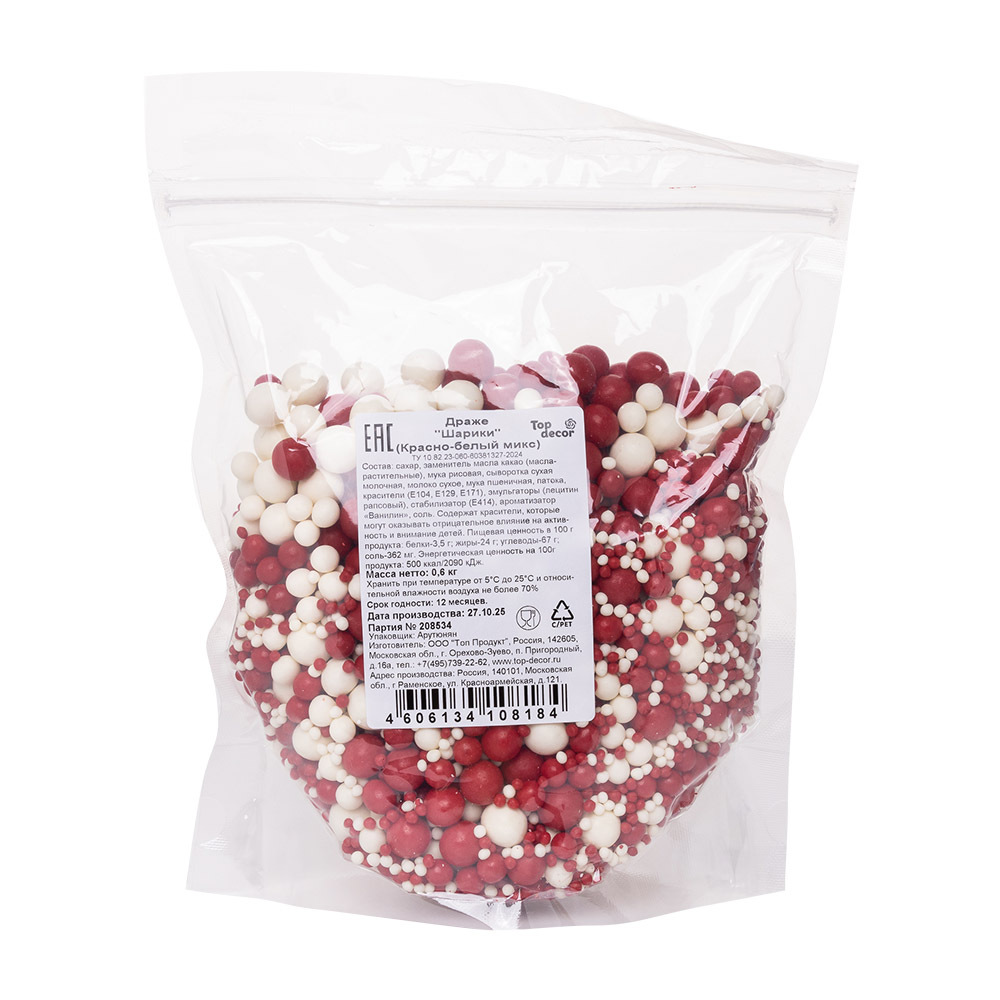 Драже "Шарики"(Красно-белые микс), 0,6 кг