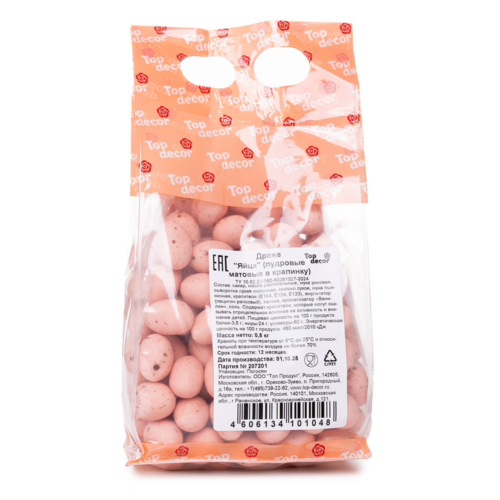 Драже "Яйца" пудровые матовые в крапинку, 0,5 кг