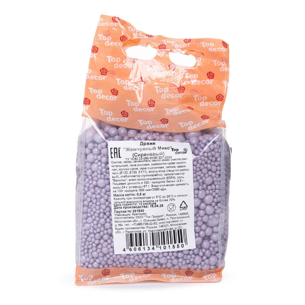 Драже "Жемчужный Микс сиреневый", 0,6 кг