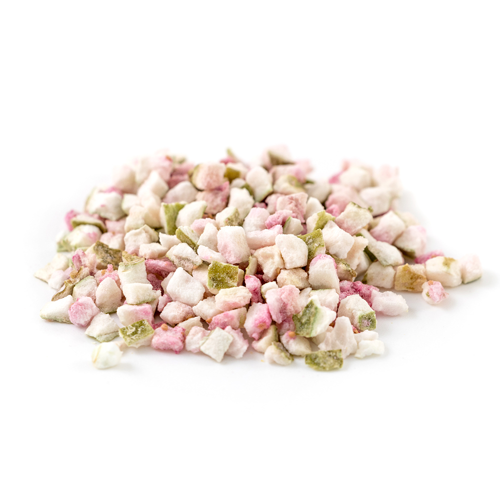 Сублимированный фрукт благодаря технологическим особенностям обработки сохраняет в себе все качества свежего фрукта. Сублимация выводит влагу из фрукта, оставляя в них до 96% полезных витаминов и микроэлементов.