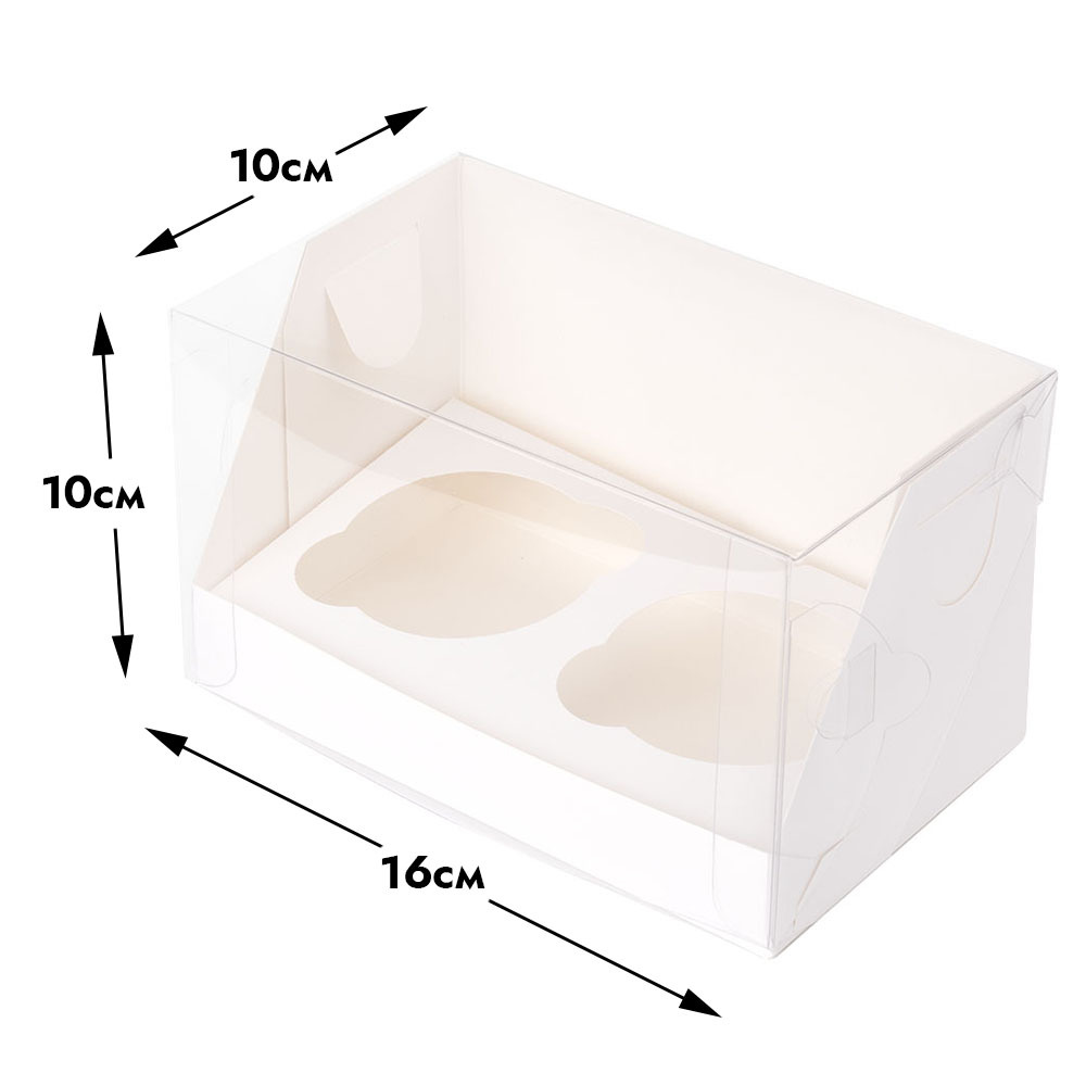 Коробка картонная для капкейков с разделителями на 2 ячейки, с прозрачной крышкой.
