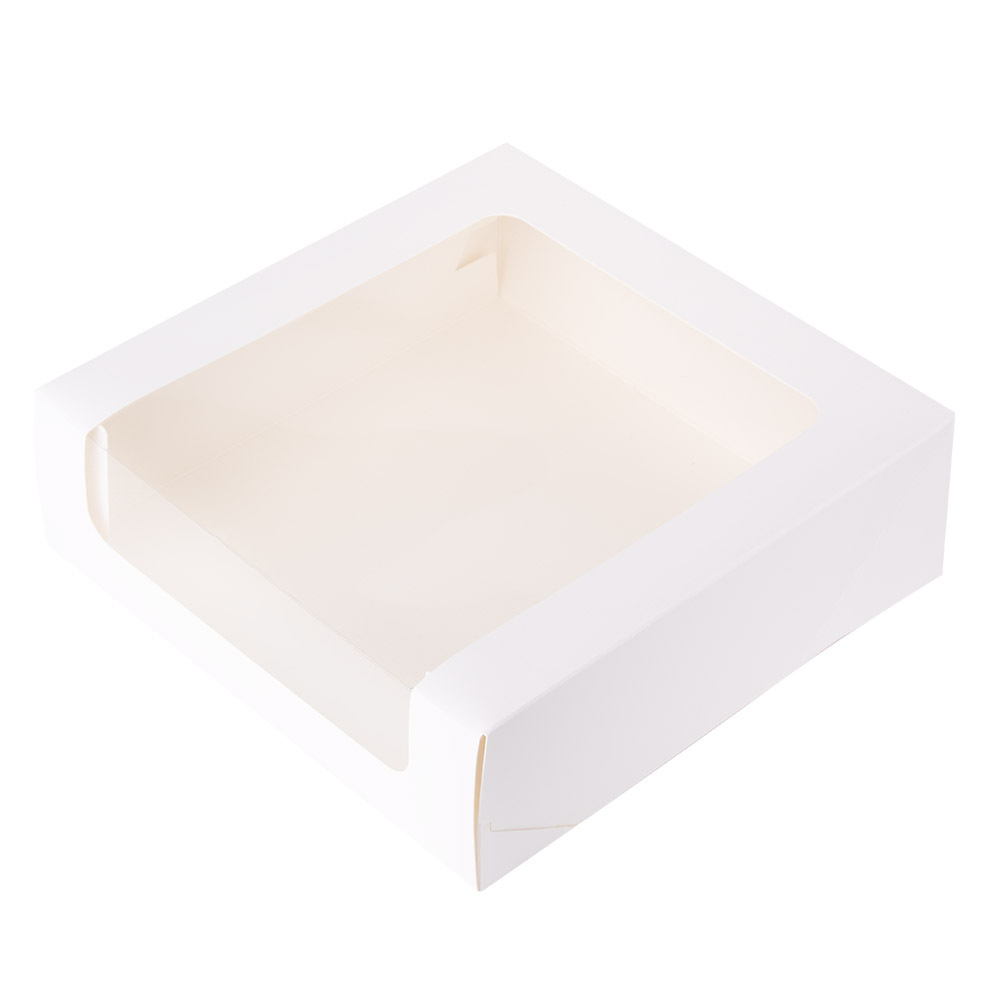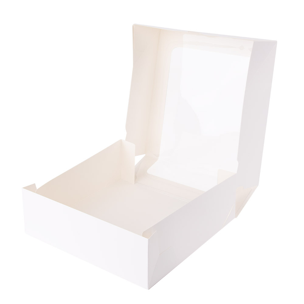 Коробка картонная с прозрачным пластиковым окном для упаковки зефира, десертов и других кондитерских изделий.