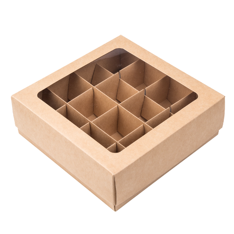 Коробка NEW для пирожных и креманок 16 ячеек с окном, крафт