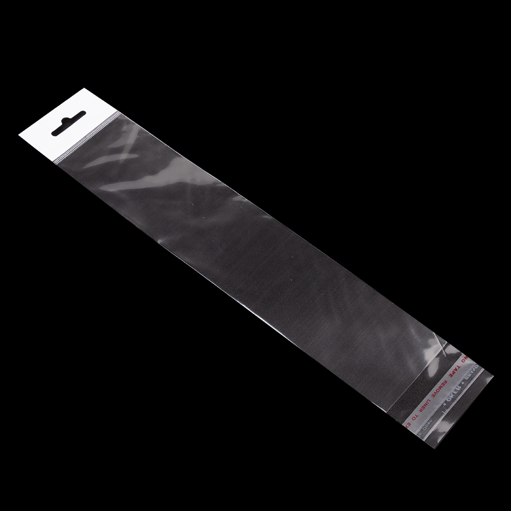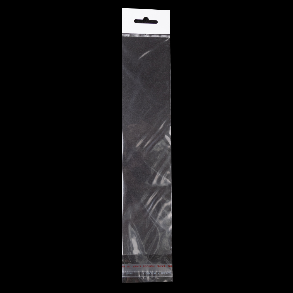 Пакетик (конверт) прозрачный с клейкой полоской и европодвесом 5*22 см