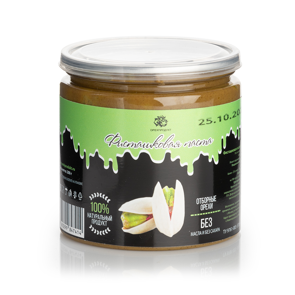 Натуральная фисташковая паста для изготовления кондитерских изделий (конфет, сладких начинок, десертов), мороженого. Паста представляет из себя кремообразную консистенцию с приятным вкусом.