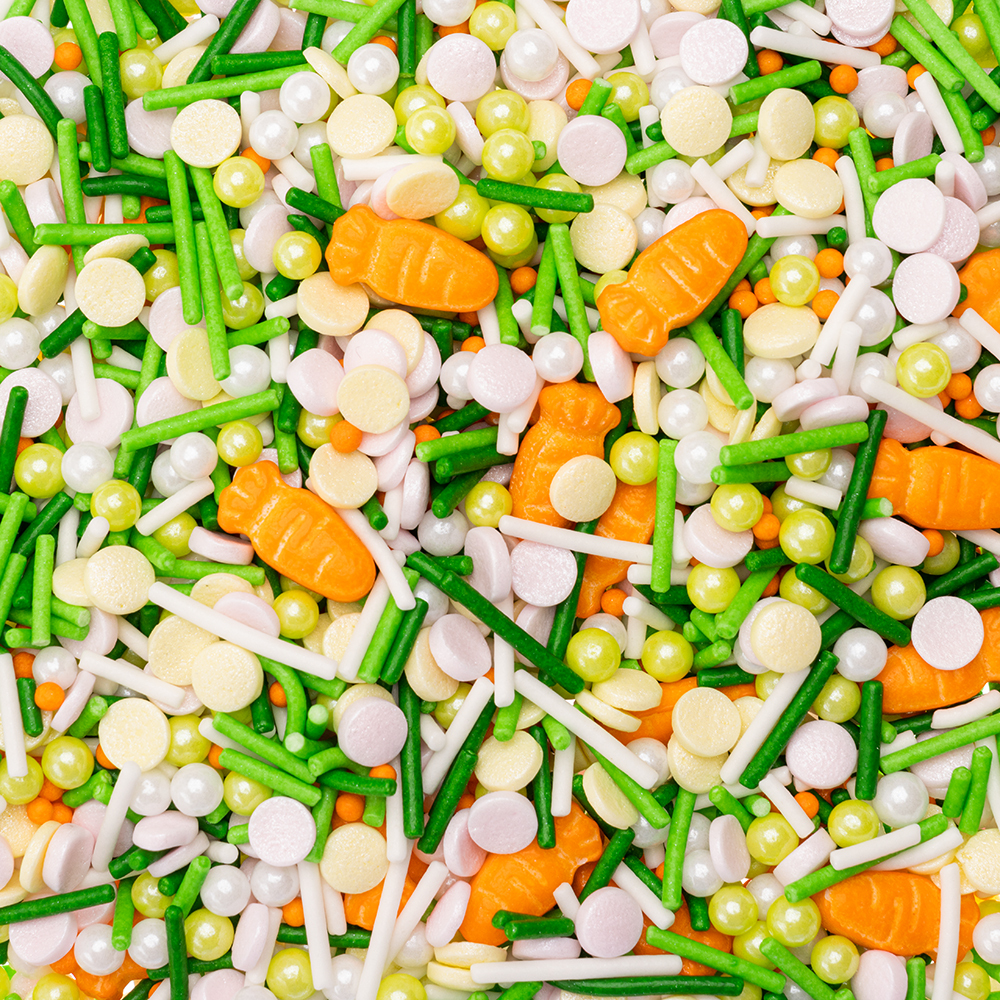 • Состав: сахар, кукурузный крахмал, мальтодекстрин, стеарат магния, пищевой ароматизатор Ванилин, пищевые красители, карнаубский воск.