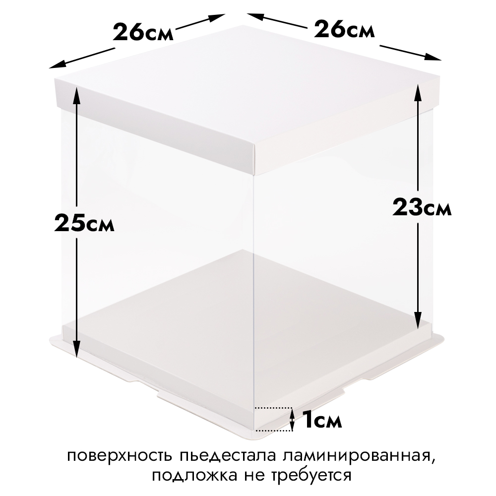| Размер коробки: | Ширина 26 см, длина 26 см; Высота внутренняя - 23 см. Высота пьедестала - 1 см |