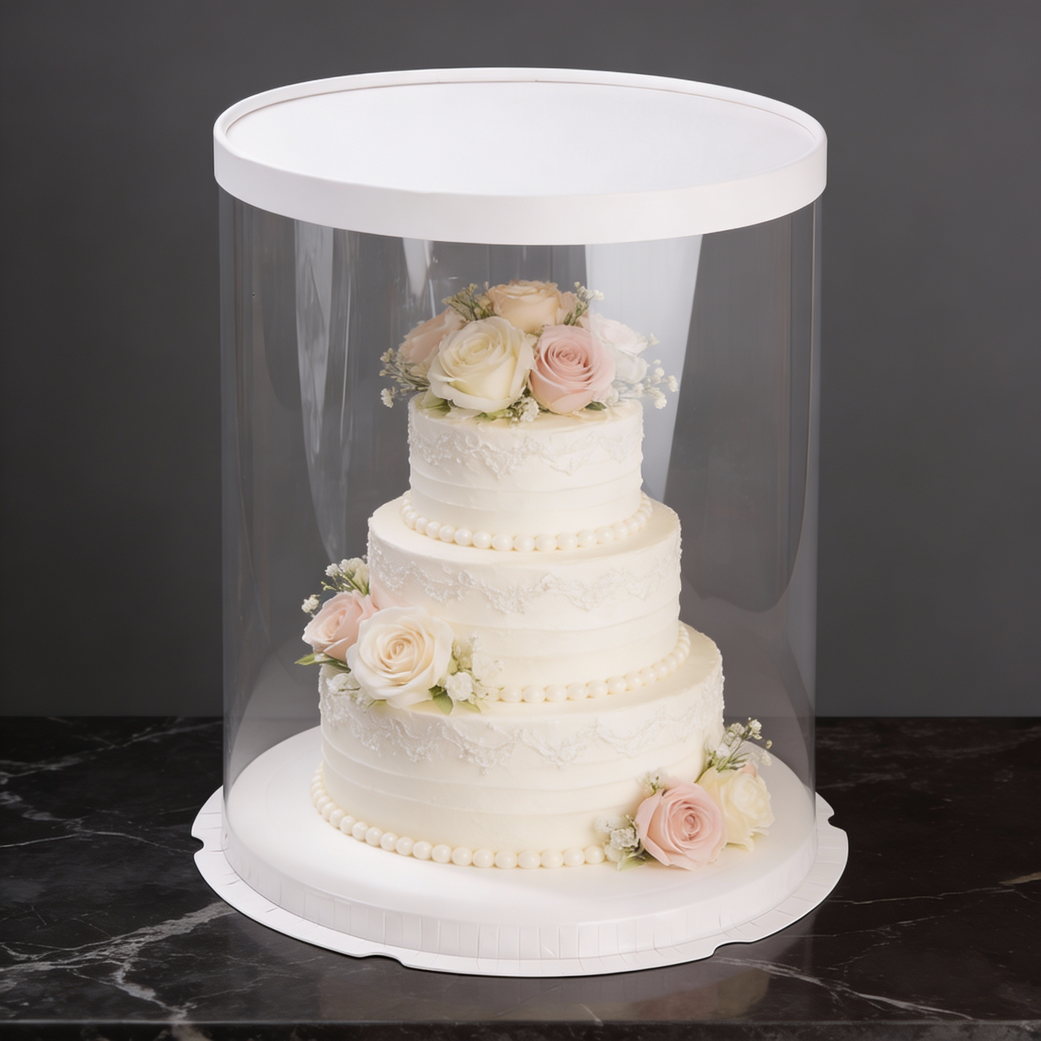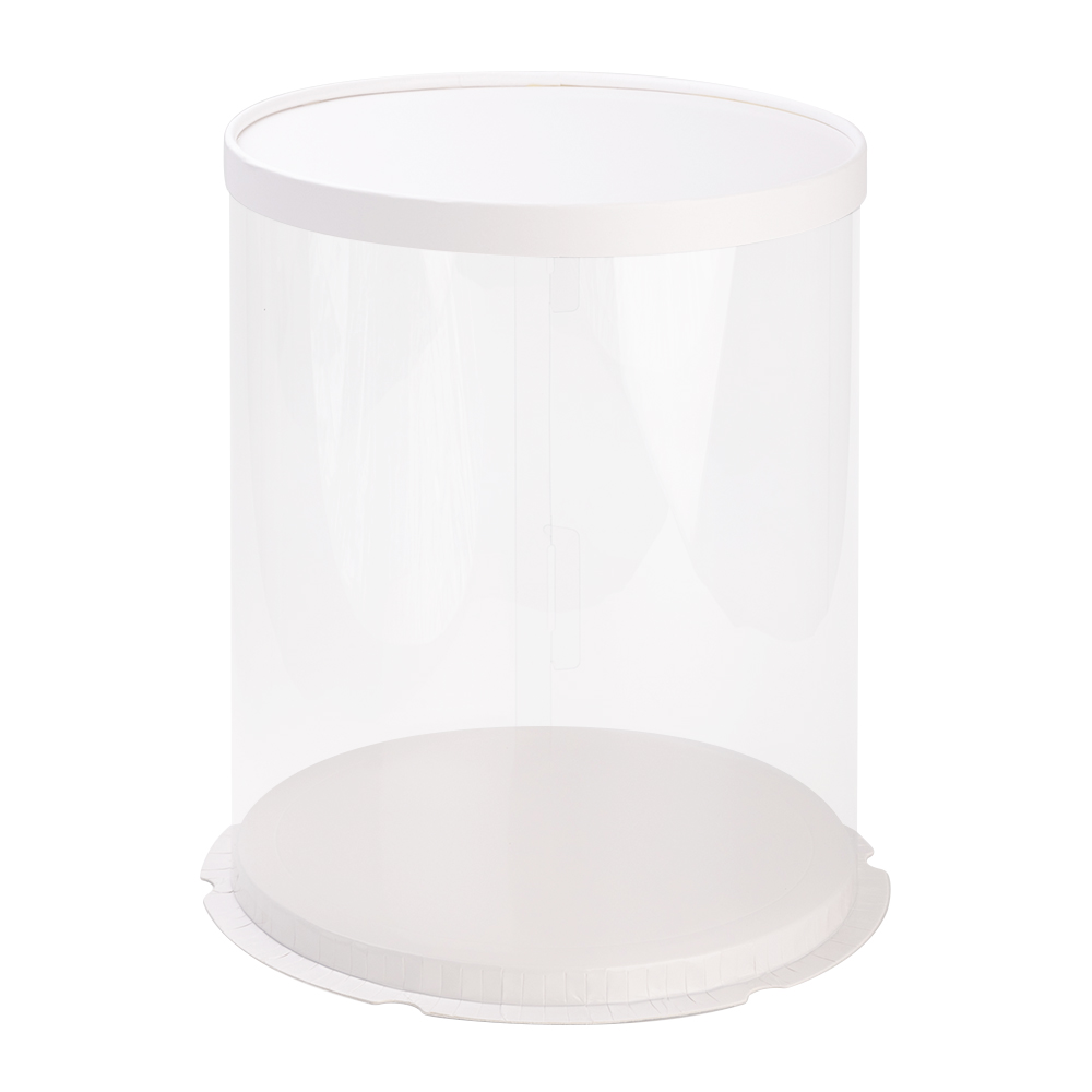 Коробка для хранения и транспортировки тортов с прозрачными стенками из плотного пластика.