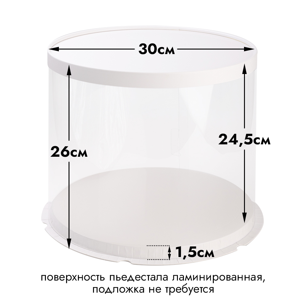 | Размер коробки: | Диаметр - 30 см; Высота внутренняя - 23,5 см. Высота пьедестала - 1,5 см |