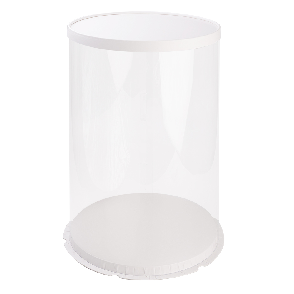 Коробка для хранения и транспортировки тортов с прозрачными стенками из плотного пластика.