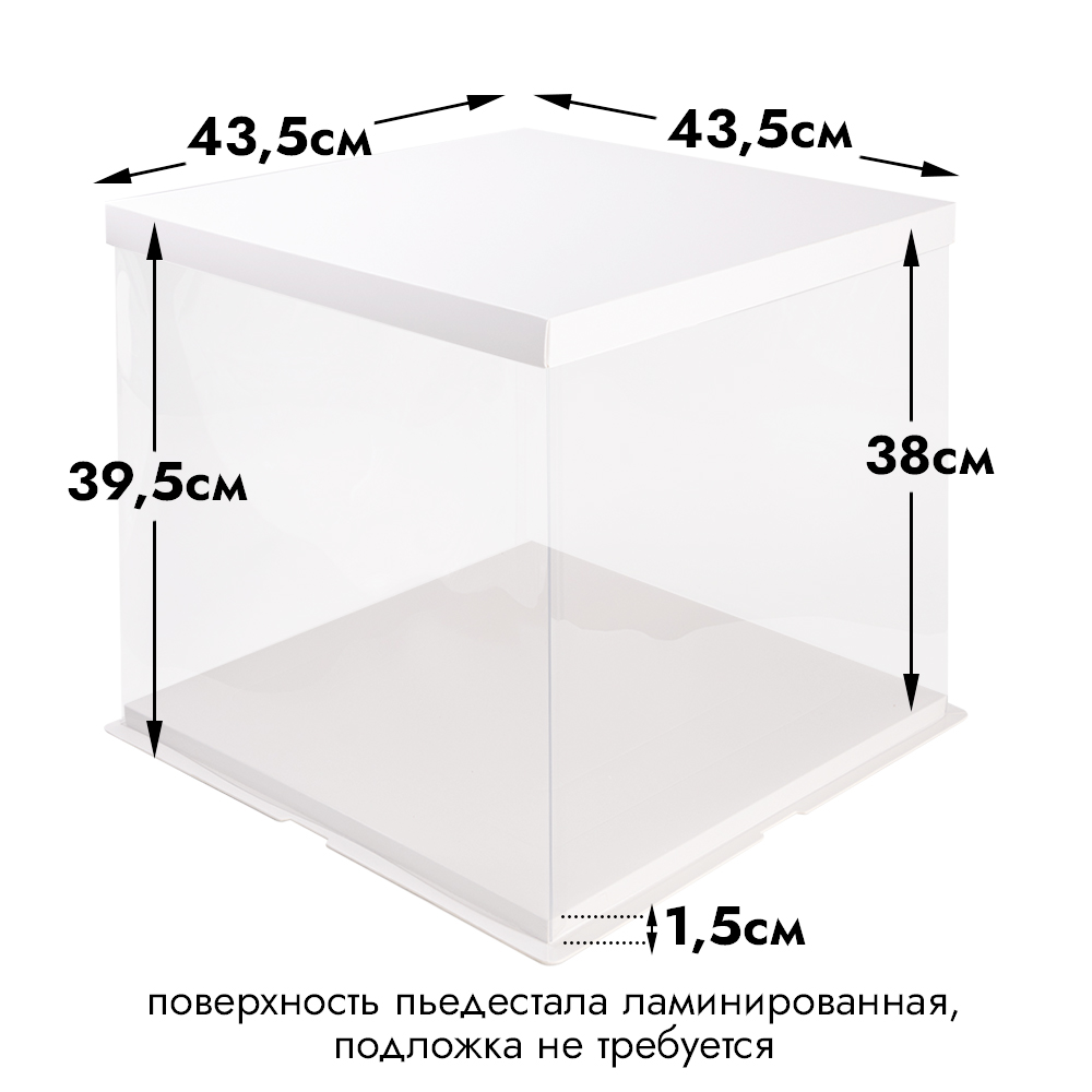 | Размер коробки: | Ширина 43,5 см, длина 43,5 см; Высота внутренняя - 38 см. Высота пьедестала - 1,5 см |