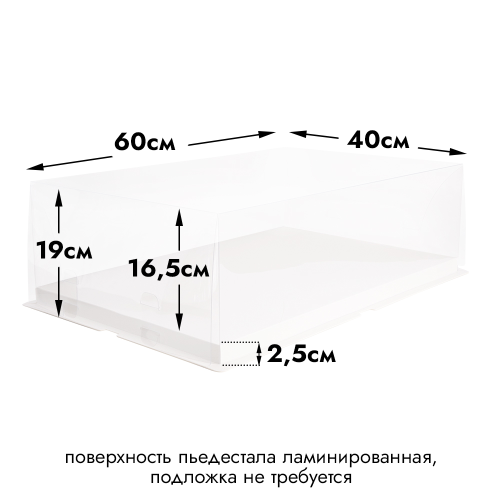| Размер коробки: | Ширина 40 см, длина 60 см; Высота внутренняя - 16,5 см. Высота пьедестала - 2,5 см |
