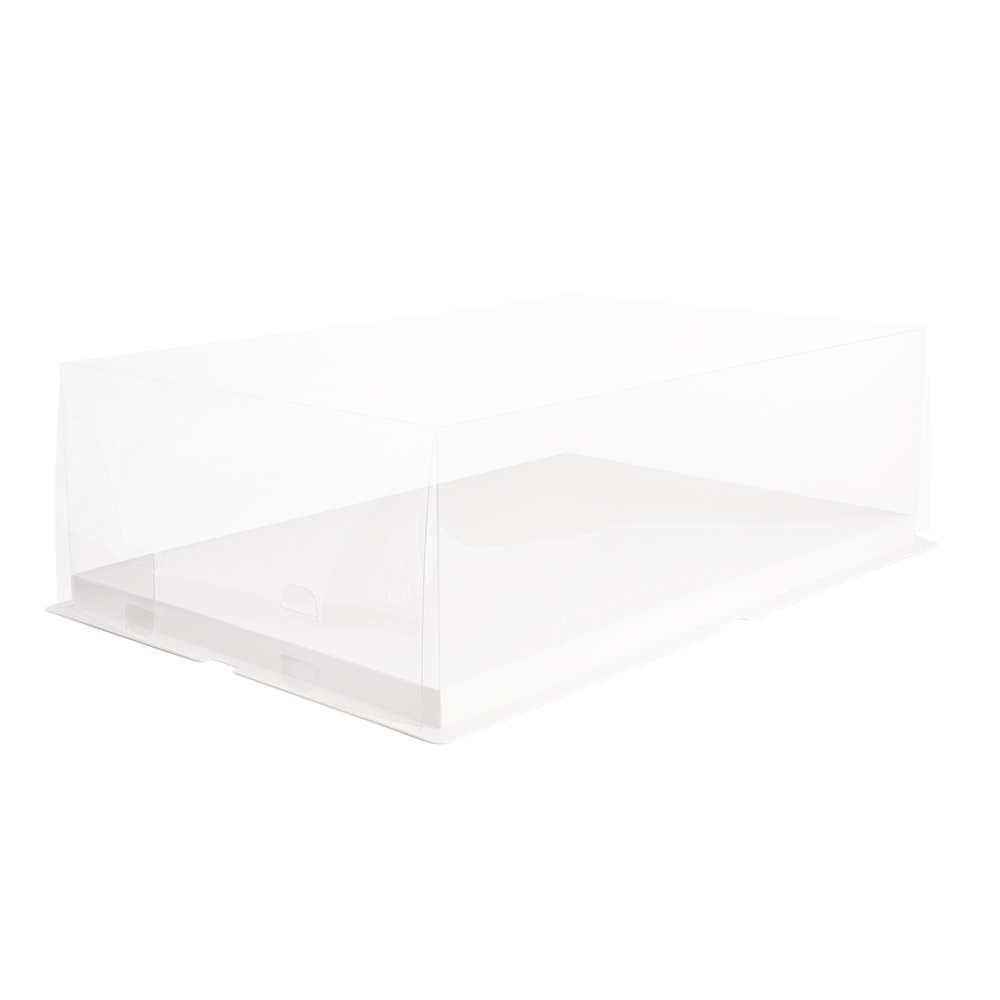 Коробка для хранения и транспортировки тортов с прозрачными стенками из плотного пластика.