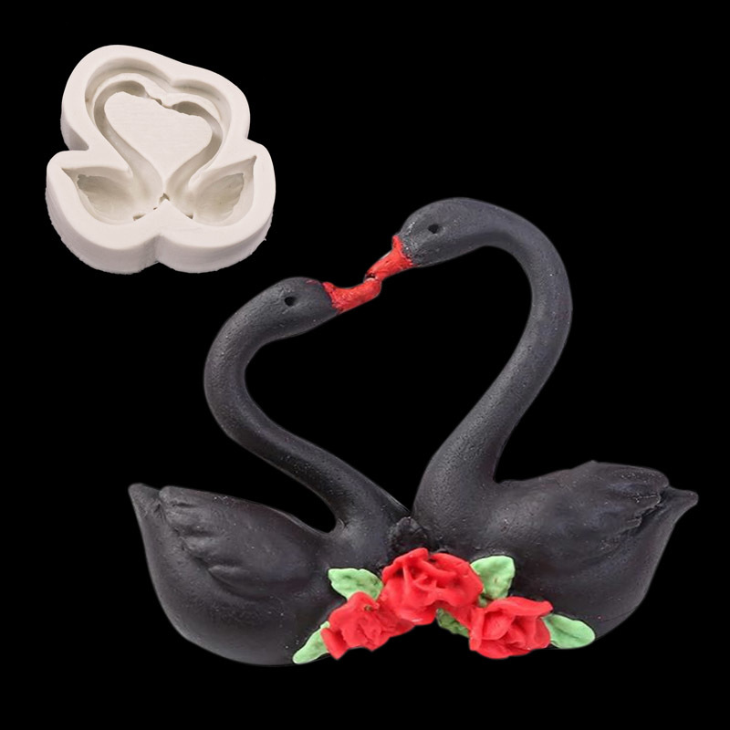 Силиконовый молд "Пара лебедей с розами" 7,5*7,5 см