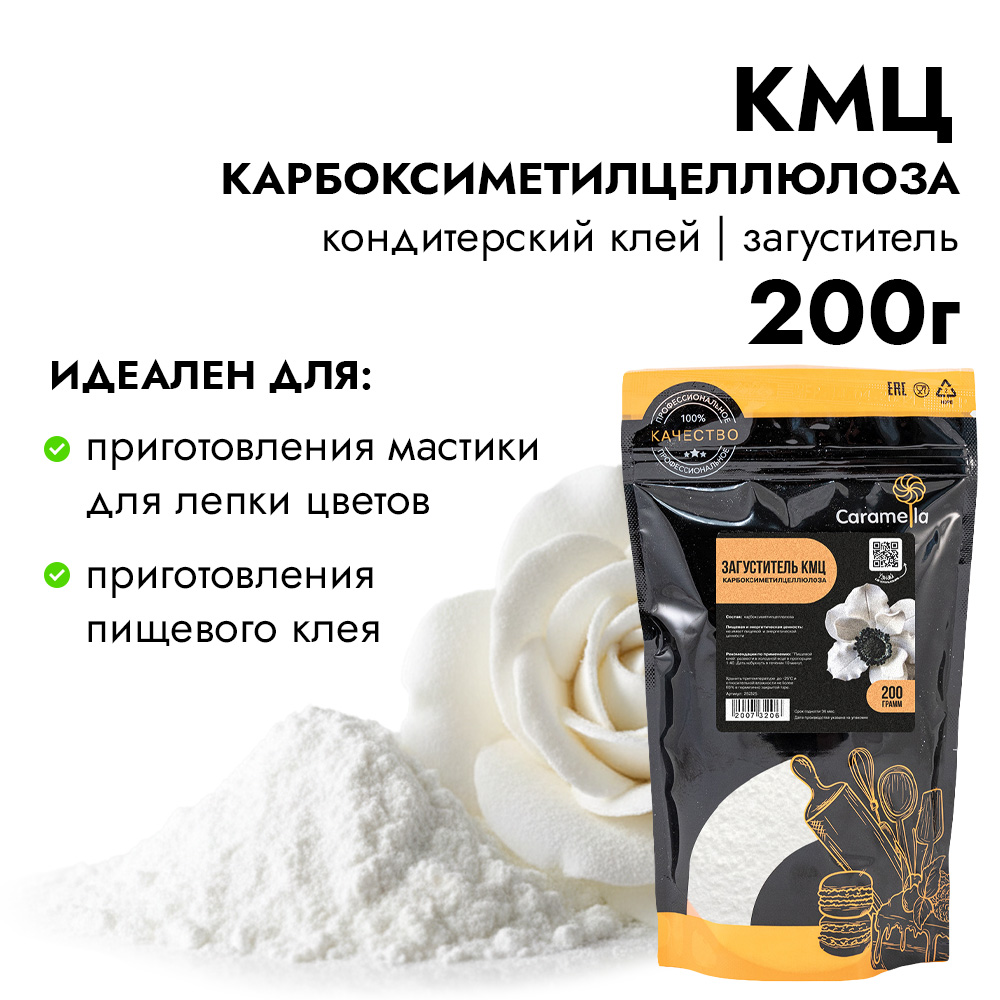 КМЦ (Карбоксиметилцеллюлоза, CMC) - это пищевой загуститель, использующийся для приготовления сахарной мастики, для изменения ее вязкости, а также для приготовления пищевого клея.